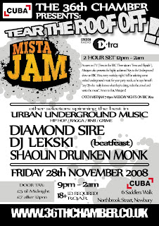 28th November 2008 will be a big night, featuring none other than Mistajam (Radio 1Xtra, UK Takeover and most recently Trexx & Flipside on BBC 3) who will be doing a 2 hour set in Cuba in Newbury!!